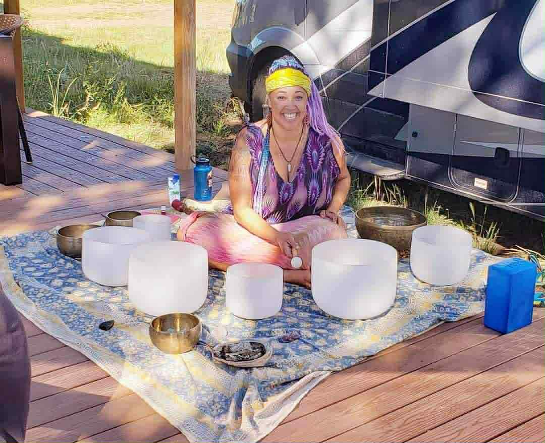 “I support others in awakening their own inner beauty and balance through sound, touch, and vibration.”In this sacred space, I hold a container for my clients to release, receive, and realign. Whether it’s through the vibration of sound bowls, intentional touch, or mindful presence, my work is about reconnecting you to the parts of yourself that long to be heard and held. Every session is an invitation to come home — to your breath, your body, your truth. May we all remember that deep healing happens when we feel safe enough to surrender. May we trust that the frequencies we create ripple far beyond this moment. You are worthy of rest, of peace, and of being fully seen.